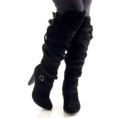 Fahrenheit Luga-05 Black Velvet Over Knee High Heel Boots, Size: 8 (M) US [Apparel]