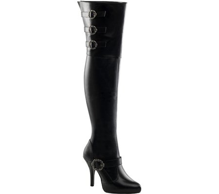 - Width/Shaft Thigh High Boot, Featuring Octopus Shaped Buckles, Side Zip