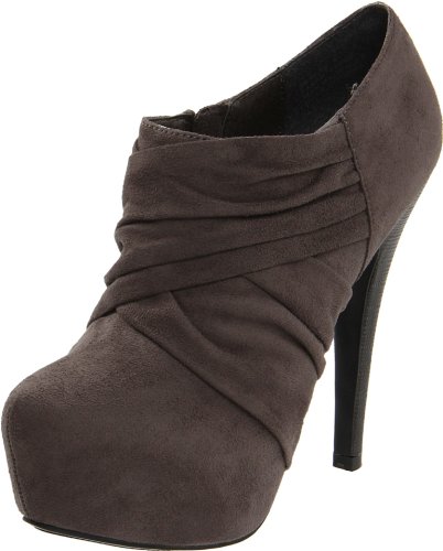 Zigi Soho did not miss the mark with this fashion forward bootie! These grey fabric pumps features a textured 5 1/2 inch heel and a 1 1/2 concealed inch platform with gathering at the vamp for extra texture. A soft pointed toe and a small side zipper finishes off this sleek look.